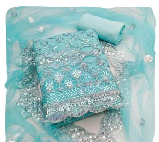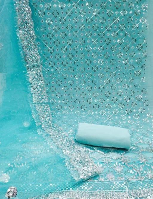 Name: NET SUITS Unstiched Wedding Wear Heavy sequinned Work Wear Suit Like Party Wear solid Unstitched Net Suit with Exquisite Sequin Work Women's PAKISTANI SUIT FOR WOMENS Double Embroidered Work Plus Double Salwar Suit & Dress Materials Aqua Blue Colours