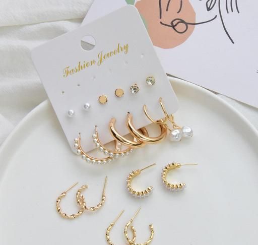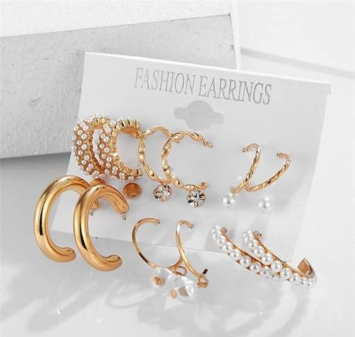 Combo of 9 Pair Gold Plated Stone Stud And Pearl Hoop Earrings For Women And Girls. These Earrings Have A Sleek And Modern Feel. Perfect For Layering With Other Jewelry Or Wear Alone. Fashion And Simplicity Design, Enhance Temperament And Excellent Taste.