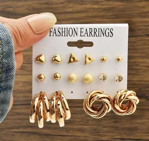 Name: New Earrings | Stylish Earring | Beautiful Designer | Stud Earrings With 8 Pairs For Girls | Small Stud Earings | Gold Stud Earrings | Earrings With Gold Plated | Western Stud Earrings For Girls & Women