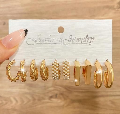 Combo of 5 Pair Geometric Twisted Chain Pearl Hoop Earrings For Women And Girls. These Earrings Have A Sleek And Modern Feel. Perfect For Layering With Other Jewelry Or Wear Alone. Fashion And Simplicity Design, Enhance Temperament And Excellent Taste.