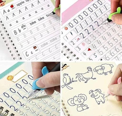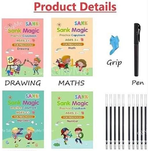 Name: Sank Magic Practice Copybook, (4 Book + 10 Refill+ 1Pen +1 Grip) Number Tracing Book for Preschoolers with Pen, Magic Calligraphy Copybook Set Practical Writing Tool Simple Hand Lettering