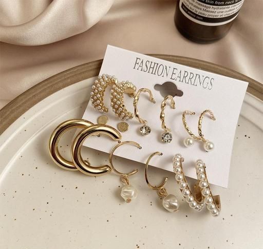 Combo Of 9 Pair Gold Plated Pearl Hoop , Drop, Tiny and Studs Earrings For Women & Girls. The Fashion Earring Set Combines Most Of Stylish Tassel Earrings, Acrylic Earrings, Alloy Earrings, Pearl Earrings and Stud Earrings, With Different Shapes and Styles, Which Will Make You Stand Out Every Day.