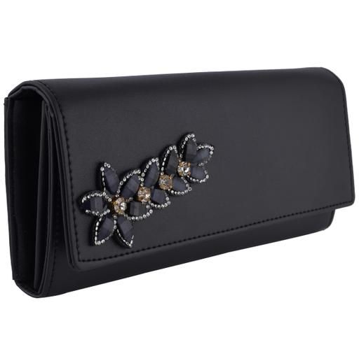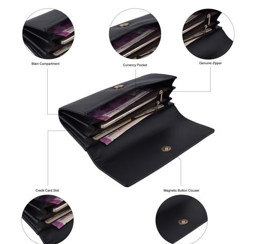 Name: Women's Faux Leather Wallet Cum Hand Clutch With 4 Card Pockets (Peacock Black)