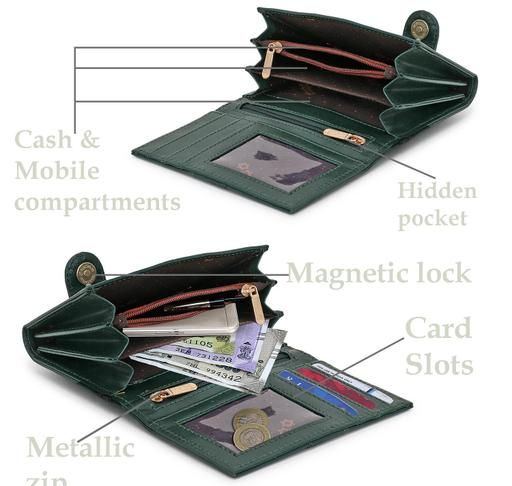 Name: Wildauk Women Casual, Formal, Travel, Evening/Party Green Leather Wallet (3 Card Slots)