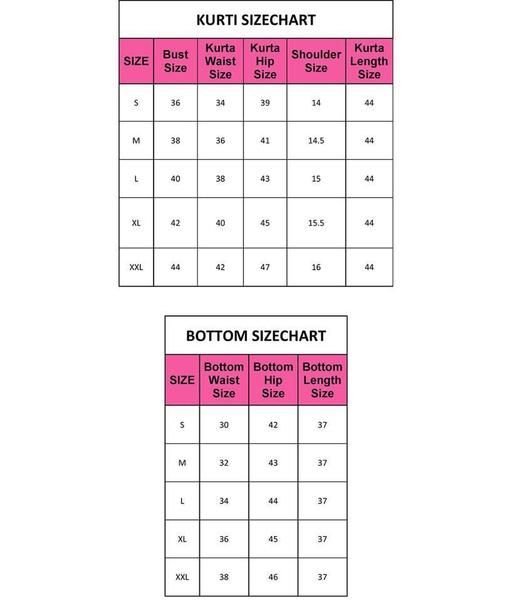 XS, S (Bust Size: 36 in, Shoulder Size: 12 in, Kurta Waist Size: 32 in, Kurta Length Size: 42 in, Bottom Waist Size: 32 in, Bottom Length Size: 40 in)