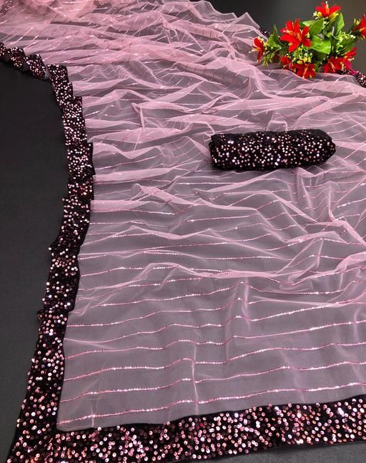 SALE RATE NET FABRIC SEQUINS WORK SAREE