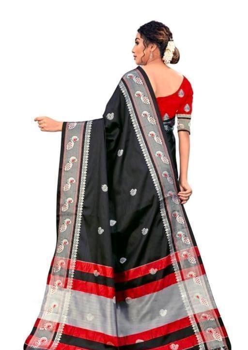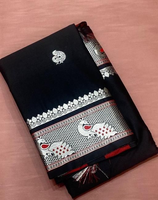 Name: Ikat Silk Black Saree With Tassels/ Latkans and Blouse