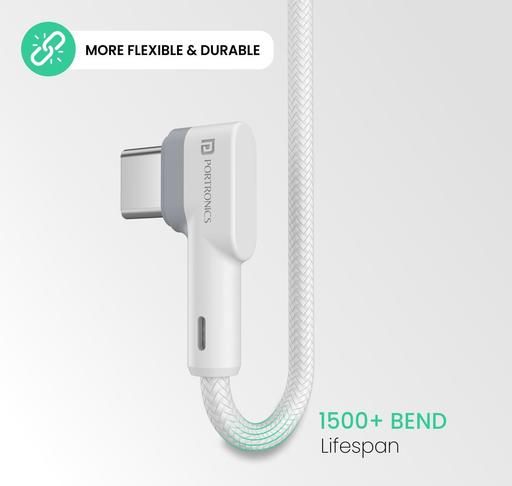 Product Name: Portronics Konnect L 60W PD Type C to Type C Mobile Charging Cable, 1.2M, Fast Data Sync, Tangle Resistant, TPE+Nylon Braided(White)