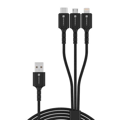 Product Name: Portronics Konnect A Trio 3-in-1 Multifunctional Cable 3.0 A 1.5 m for Micro USB for iOS and Type C Mobile Phones (Black)