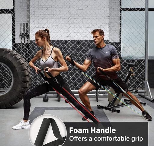Dezna Present 5 Colors Levels of Resistance?- Resistance Bands Set includes – Black (30 lbs.), Green(15 lbs.), Blue (25 lbs.), Red (15 lbs.), and Yellow (10 lbs.). The bands can be used alone or stacked in any combination to achieve your optimal resistance level up to 35 lbs. Suitable For Any Fitness Level?- Our bands can apply to different types exercise. Coaches can use our resistance bands Set to create effective fitness & weight loss programs for their clients. Whether you are a beginner or an expert; these resistance bands Set can fully meet your needs. 100% Natural Latex?- New exercise bands Set are made from 100% natural latex,each band is three layered and carefully constructed,strong wear resistance and perfect elasticity which has a perfect junction to the metal hook. Have 2 pcs Non-slip handle, comfortable and absorbent. Your Personal Home Gym?- This resistance band set includes 5 Exercise Bands, 1 Door Anchor, 2 Ankle Straps, 2 Cushioned Handles and User Manual. Perfect for toning your arms,shoulders, chest, glutes, legs etc. Also comes with convenient travel pouch.You can also take your bands to Gym, Office, and even workout on vacation! Premium Quality Materials? Made of natural latex, these resistance bands set are elastic, durable, and eco-friendly, meanwhile harmless to your health. The foam-coated handles are anti-slip and sweat-wicking, protecting your hands