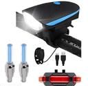 USB Rechargeable Front Cycle Light Back Tail Light And Tyre Valve Light (Pack of 1 Front Light, 1 Rear Light, 2 Valve Lights)